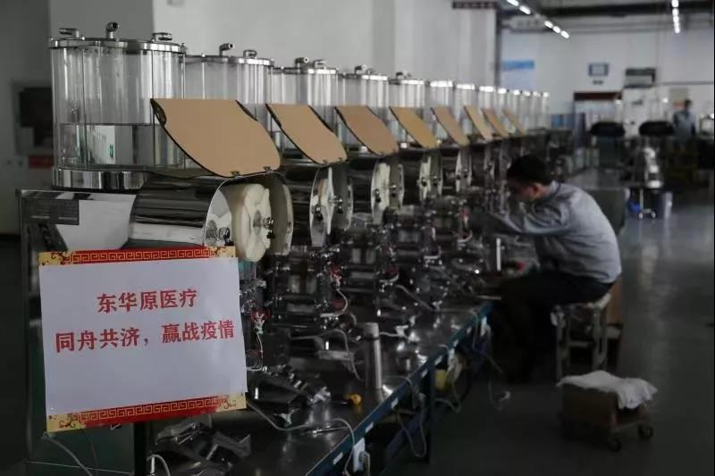 时逢新春佳节,在本该万家团聚的欢乐节日里,一场突如其来的疫情打破了以往的喜悦与欢乐,自2019年12月以来,湖北省武汉市发现多起病毒性肺炎病例,后被世界卫生组织命名为“2019新型冠状病毒”(2019-nCoV)。随着感染病例的全国性爆发,一场没有硝烟的战争牵动着全国人民的心。2020年,这样的开始,似乎很难,重启2020成为了无数心系疫情的中华儿女最大的愿望,但2020年,开始得也很暖。疫情面前,一线白衣天使的迎难而上,社会各界爱心人士的无私捐赠,海内外无数中华儿女的心系祖国都让这个被疫情所扰的新春佳节显得更加温情暖暖。面对新型冠状病毒感染的肺炎疫情防控工作,东华原医疗在董事长南龙的带领下,对一线防疫工作持续保持高度关注,各中心总监不分昼夜指挥工作,希望为各地提供切实的帮助,助力解决一线抗疫医疗物资短缺的重大难题。南永军特助和安宝全总监为了保障到岗员工的安全,特地深夜排队为员工采购口罩等防护物资;杨玉洲总监积极与相关部门及各办事处沟通,了解各地实际情况,部署防疫工作;人力资源中心为了保证原材料和成品能在疫情道路畅通无阻,积极协助,取得相关上级主管部门的政府函件证明......此时,防疫工作就是我们的首要任务。作为中华儿女,在特殊时期能够为祖国奉献一份微薄之力,东华原医疗全体员工义不容辞。在疫情始发初期,东华原医疗全国各地办事处就主动与各地区中医及医疗机构联系,积极安排售后人员随时待命,完成各地设备的巡检及维修。在客户提出前线医疗物资,如煎药机设备、中药包装卷、血压仪等医疗设备开始告急的紧张时刻,各地方办积极与公司总部联系,确保在最短的时间内满足客户对疫情防控产品的一切需求。一线煎药机设备、中药包装卷、血压仪等医疗设备告急的情况下,东华原医疗生产中心提前开展工作,恢复设备生产,以确保紧缺设备及产品的及时供应。“尽管我们每个人都想享受更好的假期,降低对疫情的可怕心理,但是急客户之所需一直是每一位东华原人坚守的责任,我们必须积极响应,行动起来,尽自己的绵薄之力,去支援国家,只要疫情得到控制,我们的付出就是值得的。”生产中心的员工如是说。