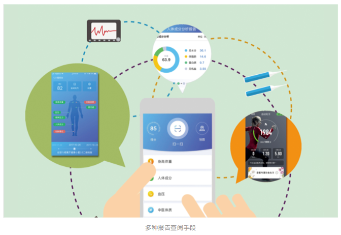 “基于互联网+健康小屋”的创新健康服务平台,以多终端互联、多终端体验、增加互动体验性等特性,受到大众欢迎。对于大众而言,他们可通过健康小屋体验一场流畅便捷的健康体检,线上查阅检测报告,随时随地实现健康管理。