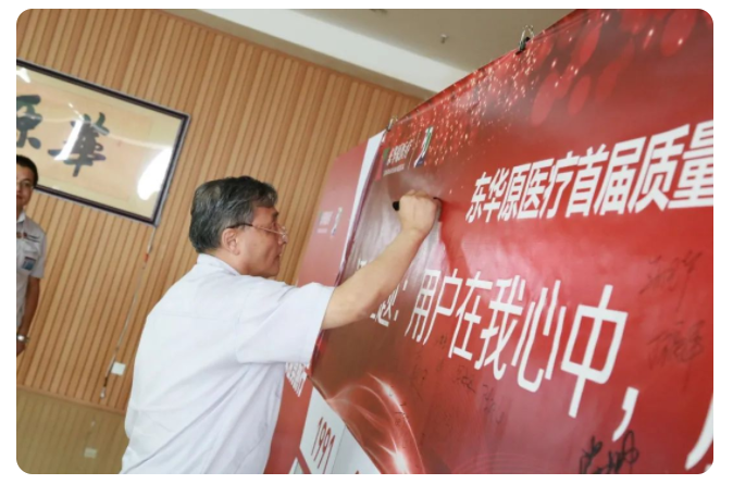 启动会首先进行了横幅入厂签名仪式,东华原医疗各中心代表庄重签字,为东华原医疗全员质量管理做出承诺。