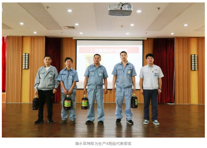 为严格落实质量管理工作,启动会上,各中心负责人以“我为质量说句话”为主题,进行了质量保证宣誓。南永军特助为获得质量流动红旗的生产4班组代表颁发了奖品。