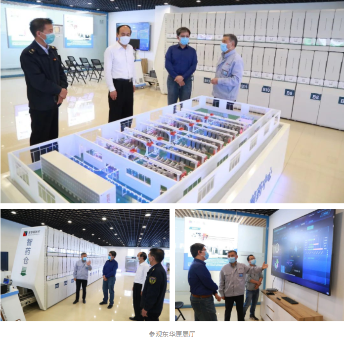 在姜黎滨总经理的介绍下,领导一行参观了东华原展厅、多功能厅、生产车间和办公区。展厅内,姜黎滨总经理详细介绍了东华原智慧中药房和健康小屋解决方案,重点讲解了中药饮片智能调剂系统及十功能自动煎药机等中药煎煮、包装设备和人体成分分析仪、心率变异性检测仪等健康体检设备。北京市市场监管局标准化处副处长李凌松、昌平区市场监管局副局长王立兵等人对东华原中医、医疗两大产品线给予了高度评价。