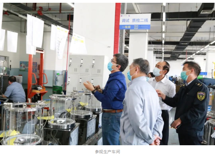 在参观中医设备生产车间时,北京市市场监管局标准化处副处长李凌松着重参观了东华原标准化的生产过程,对悬挂在车间的质量看板和质量宣传给予了充分肯定。