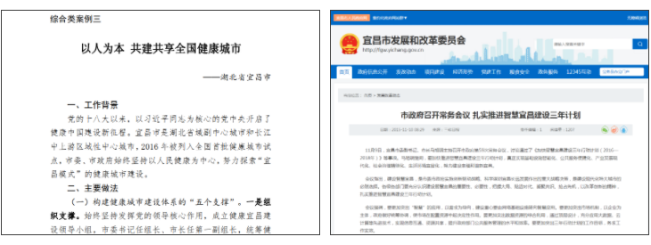 在地区典型经验案例名单中,宜昌市以“以人为本 共建共享全国健康城市”为题名列第三位。在案例正文描述中,宜昌市以健康体系建设、健康维度延伸、健康工作创新等多方面的优秀表现,被列为地区典型经验案例的“综合类案例”。