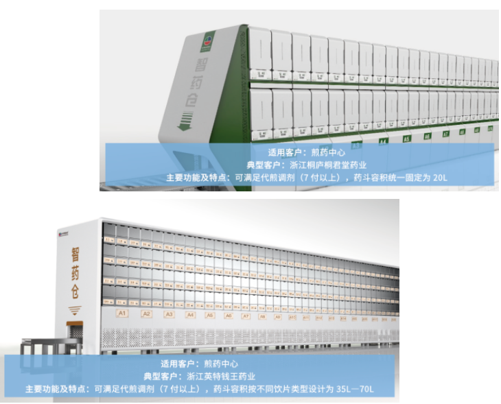 第三代中药饮片智能调剂系统功能更加强大,单付和多付调剂无缝转换,可同时满足代煎及代配调剂(1—14付),药斗容积按不同饮片类型设计,可配置自动加药系统及自动中转库。
