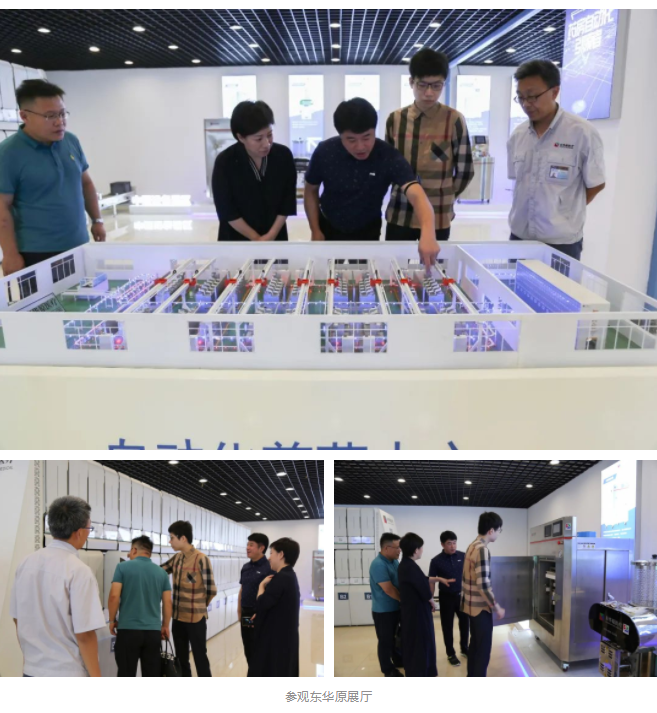 参观展厅时,各位领导认真听取了南永军特助和范国君副总监的讲解,详细了解了现代化煎药中心、中药饮片智能调剂系统、中药制粉机等中医设备的技术原理和市场应用,东华原多种中药剂型制备和一站式智慧制药模式得到了领导们的一致肯定。