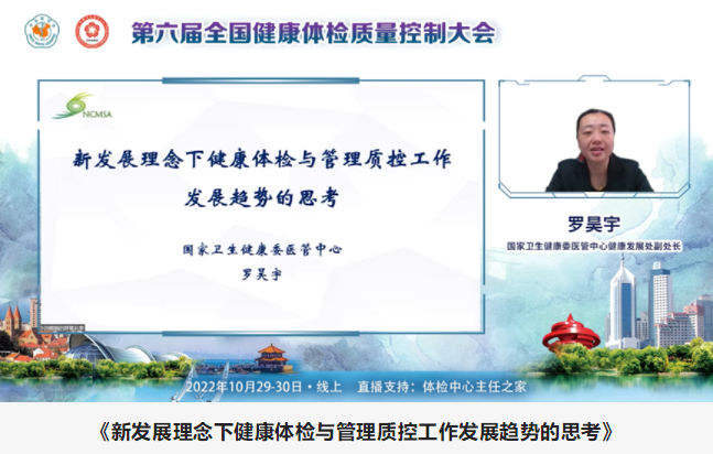 1.国家卫生健康委医管中心健康发展处副处长罗昊宇教授以《新发展理念下健康体检与管理质控工作发展趋势的思考》为题,做了学术报告分享。