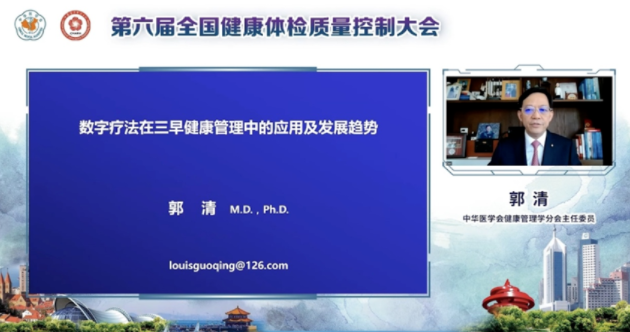 2.中华医学会健康管理学分会主任委员郭清教授以《数字疗法在三早健康管理中的应用及发展趋势》为题,做了学术报告分享。
