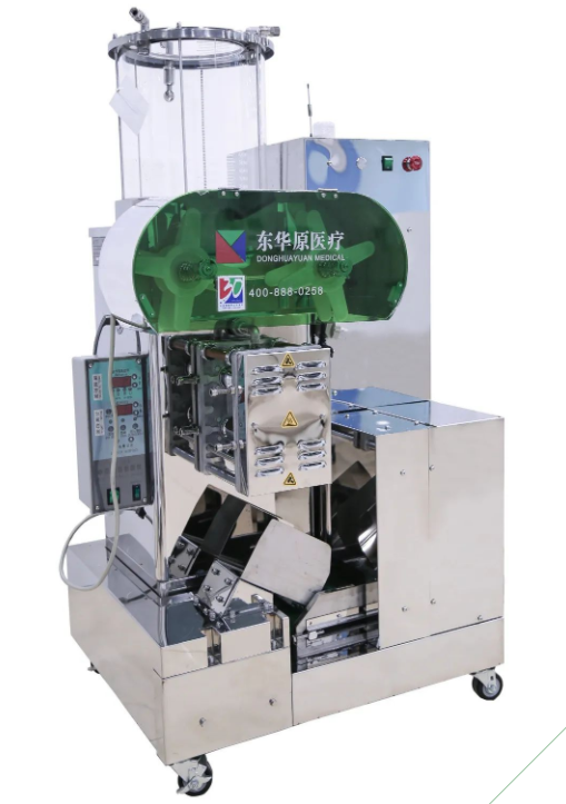 东华原中药贴标包装一体机,可自动完成客户信息打印、自动取标、自动贴标操作,实现从药液自动包装到标签打印,再到中药袋自动贴标的一体化服务。