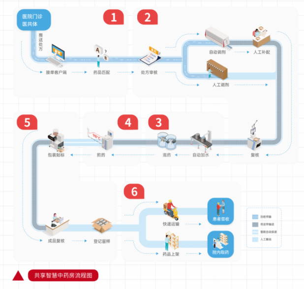 传统调剂、人工泡药加水、人工运输是传统的中药房需要面临的三大最为消耗人力、降低中药制备效率、管理混乱的环节。泰安扁鹊中医药健康产业园智慧共享中药房引入的东华原中药饮片智能调剂系统、自动加水系统、自动化运输系统,不仅加水量更加精准,传输效率大大提升,还让智慧共享中药房的整体现代化布局、清洁化、规范化管理迈上了一个新的台阶。