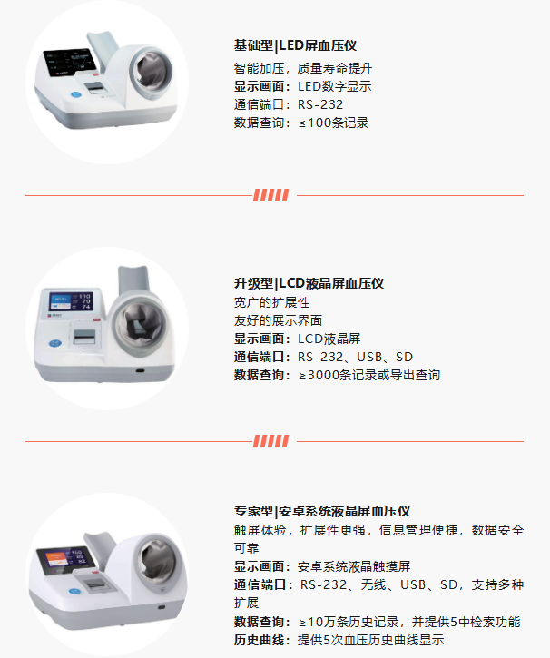东华原医用电子血压仪有基础型、升级型、专家型等多种型号可选。