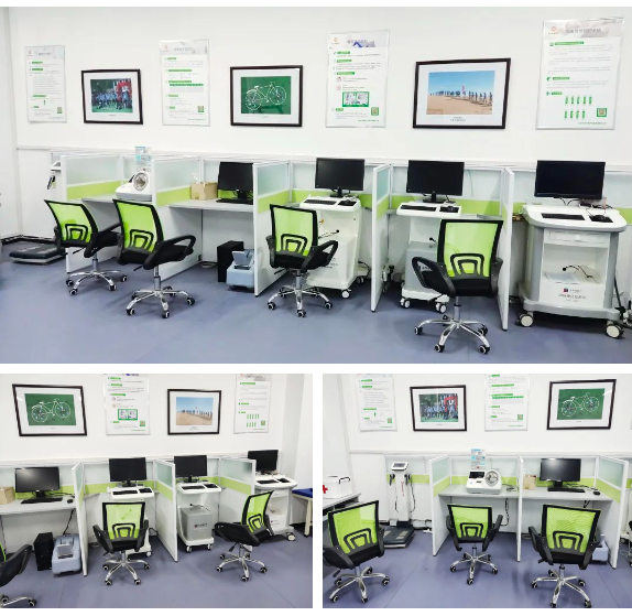 健康检测区,工会引进了一系列东华原健康体检设备,包含了人体成分分析仪、医用电子血压仪、中医体质辨识仪、动脉硬化检测仪、精神压力分析仪等设备,涵盖日常体检中的常用指标,通过智能健康监测对职工进行基础健康筛查、输出健康分析结果,建立职工健康档案,每次检查的结果同步上传,可综合分析较长一段时期内的健康情况波动。