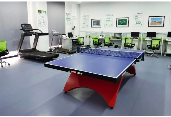 运动区,根据场地空间,工会还适当搭配了部分运动器材,包括跑步机、乒乓球台、扩胸训练器等,吸引职工积极运动,鼓励职工多体验、常运动,为职工业余时间增加乐趣,劳逸结合,提升工作效能。园区内的职工既可以来健康小屋自助检测血压、血氧、血糖等基本项目,使大家随时掌握自己的身体状况,也可以根据检测报告中的运动处方,选择合适的运动方式。