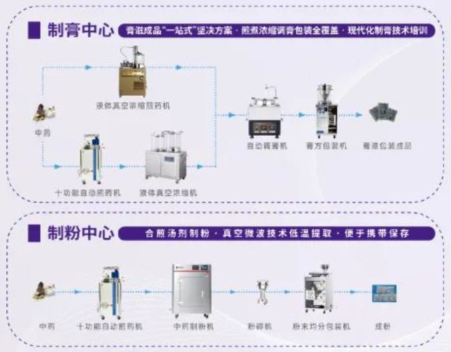 东华原智慧中药房整体解决方案可以提供多剂型服务,除中药液煎煮以外,还可以进行合煎粉剂制作及膏方制作。