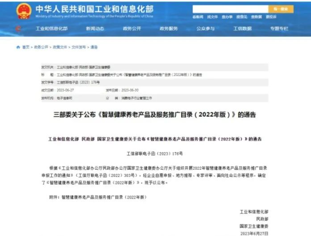 近日,工业和信息化部、民政部、国家卫生健康委共同公布了《智慧健康养老产品及服务推广目录(2022年版)》。其中,东华原凭借“健康小屋”成功入选。