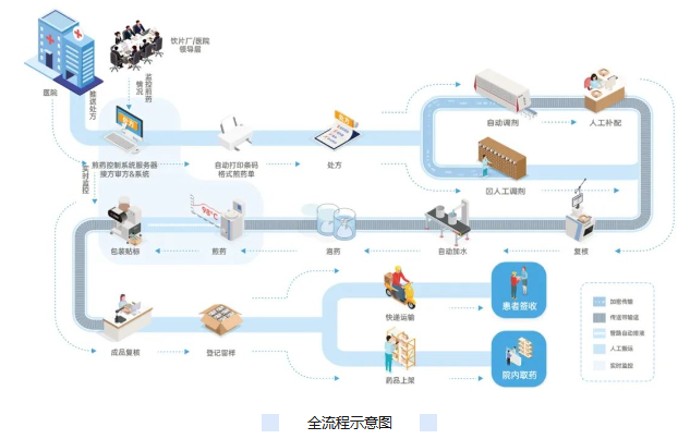 智慧中药房,是运用计算机控制、物联网及互联网技术,以煎药、包装设备为中心,将煎药工艺流程(包括处方管理、调剂、浸泡、物料传输、煎药、包装、物流配送)、终端客户服务、设备和人员管理、煎药工艺质量控制等环节进行全过程控制与管理的创新煎药服务模式。