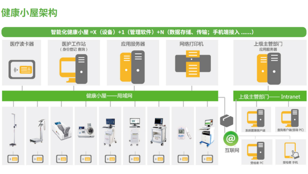 东华原健康小屋整体解决方案以“互联网+体检中心”的模式搭建全局健康检查方式,可并联多种专业体检设备,结合大数据平台建立健康档案,为慢病监测、亚健康体检提供优质服务,做到“早预防、早诊断、早治疗”,促使健康管理向多样化、全面化、系统化、个性化、信息化的方向发展,让人人可就近便捷检测、随时上网查询,面向各行各业,形成了多种健康解决方案,让健康管理走入全产业链,获得全社会健康服务的全面提升。