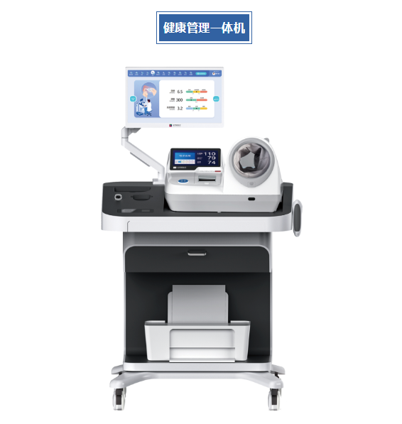 健康管理一体机应用互联网、物联网及多种信息识别和信息传输技术,采集受测人员的多项身体体征数据,进行信息收集、分类、储存和分析,将个人信息及健康档案实时上传至管理工作站,实现慢性病人群的分类与持续管理,并支持上传至公共卫生管理服务平台和HIS 等医疗信息化平台。