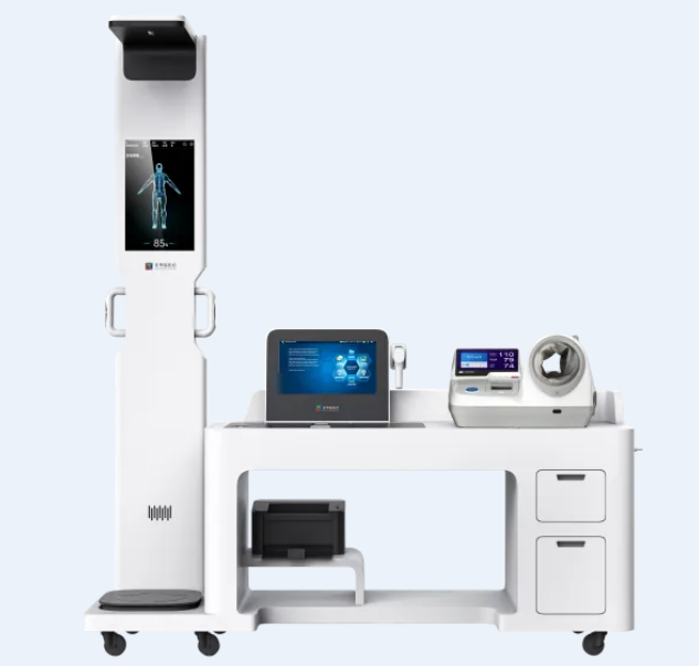 东华原健康管理一体机应用互联网、物联网及多种信息识别和信息传输技术,采集受测人员的多项身体体征数据,进行信息收集、分类、储存和分析,将个人信息及健康档案实时上传至管理工作站,实现慢性病人群的分类与持续管理,并支持上传至公共卫生管理服务平台和 HIS 等医疗信息化平台。