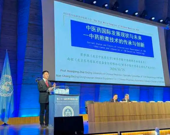北京中医药大学翟华强教授联名南程在设立于联合国教科文组织一号大厅的主会场,作“中药煎煮技术的传承和创新”主旨报告。