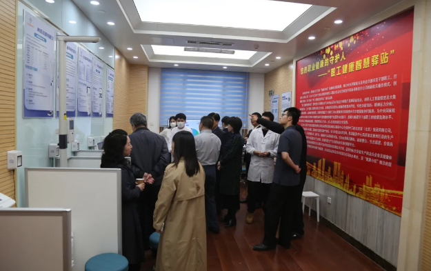 该健康驿站配备了由东华原研制的人体成分分析仪、动脉硬化检测仪、精神压力分析仪、骨密度仪及中医体质辨识仪等特色健康医疗设备和健康大数据服务平台系统。 会议期间,与会代表参观体验了“职工健康智慧驿站”并进行了交流研讨,对健康驿站的自助检测、身心综合监测、健康大数据管理平台给予了很高评价,肯定了搭建“职工健康智慧驿站”进行职工健康管理的模式,是创新机关服务的有益尝试,有助于推动机关服务高质量发展。