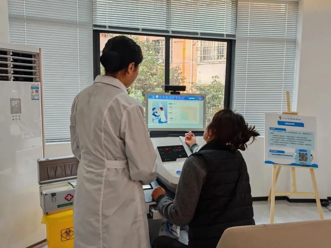 江油工小白驿站的目前配备了东华原健康管理一体机、动脉硬化检测仪、人体成分分析仪等核心设备,可同时为多位职工提供多种类型的健康检测服务。
