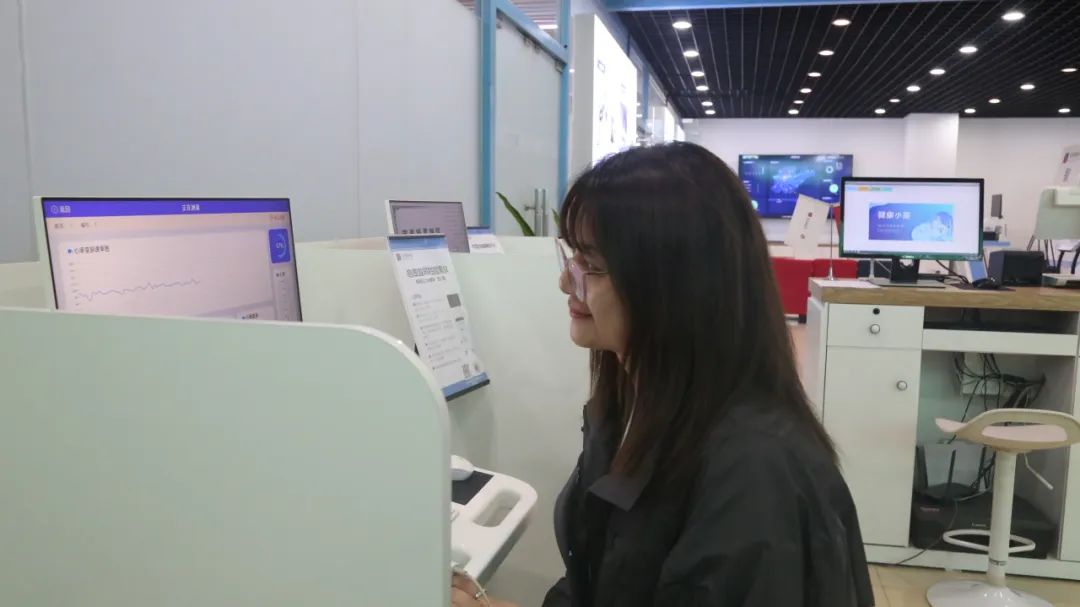 在参观过程中,领导们亲身体验了身高体重仪、精神压力分析仪等健康检测设备,对设备的精准度和智能化操作给予了高度评价,充分肯定了东华原在健康管理领域的创新实践。