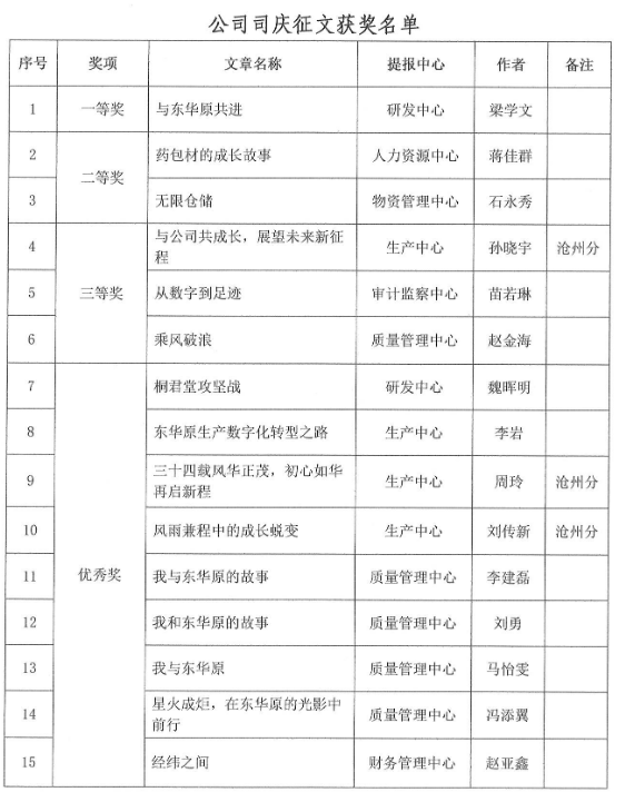 为庆祝东华原成立34周年 ,展现公司辉煌成就 ,回首34年来东华原人代代相承的企业精神,公司举办了“公司司庆征文评选活动”。