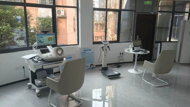 在自助检测区,魏华梅体验的“健康管理一体机”正快速采集12项基础体征数据,一旁的3D皮肤分析仪则通过光谱成像技术,详细反馈皮肤含水量、毛孔状态等14项美容健康指标。而在综合理疗区,智能艾灸机器人正精准定位足三里、三阴交等穴位,根据魏华梅想改善的问题进行定制化中医理疗。“以前去医院做一次全面检测至少半天,现在在驿站半小时就完成了,还能根据需要做理疗,太方便了。”她指着理疗区正在工作的冲击波理疗机器人和中药熏蒸舱说道。