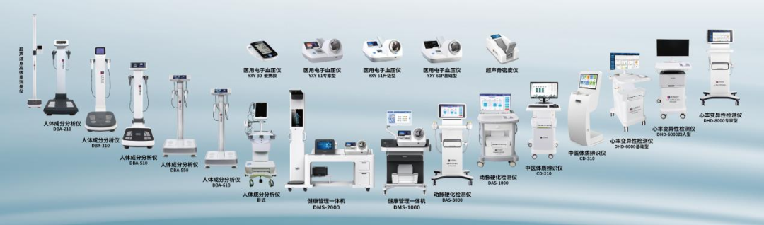 东华原利用品牌和技术优势,研发了人体成分分析仪、心率变异性检测仪、动脉硬化检测仪、医用电子血压仪、超声骨密度仪等8大系列,20多个型号是医疗健康体检设备。涵盖了血压、血脂、血氧、血糖、心率、身高体重、人体成分、骨密度、动脉硬化、视力、中医体质等多项健康监测内容,可以根据不同应用场景的需求,增添个性化检测内容。