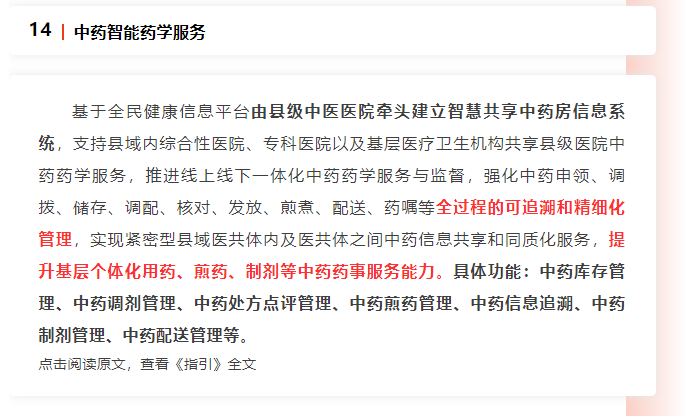 《紧密型县域医共体信息化功能指引》印发:县级中医院牵头建立智慧共享中药房信息系统