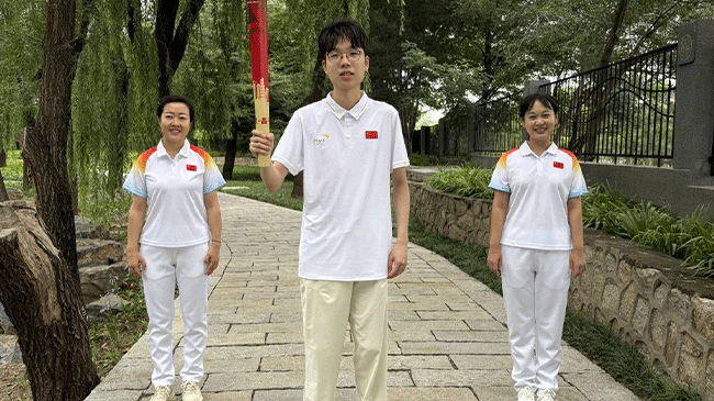 8月14日下午,南程顺利将火炬交接给城北街道站的火炬手