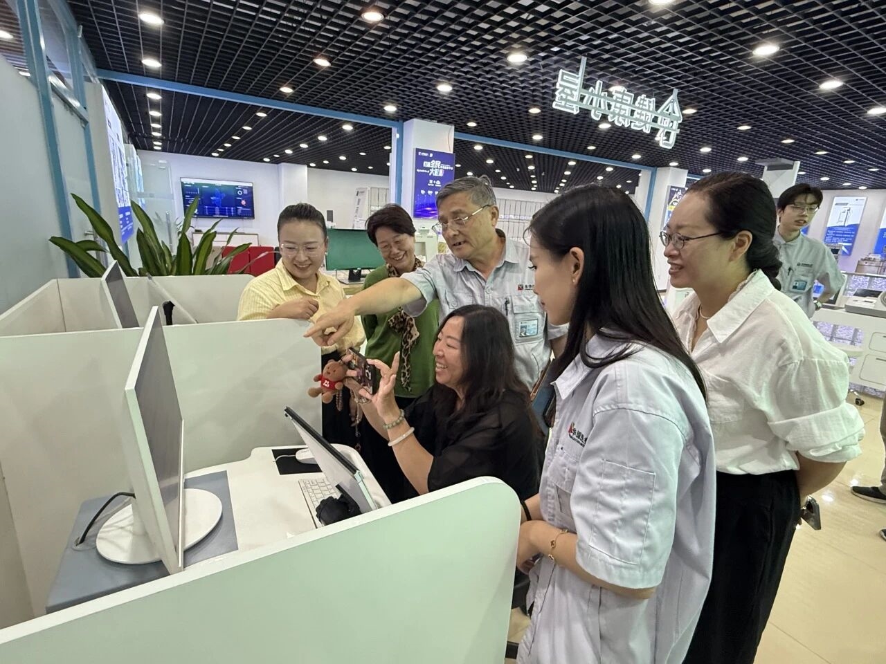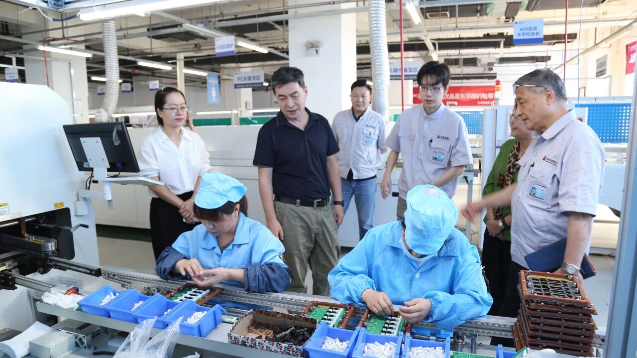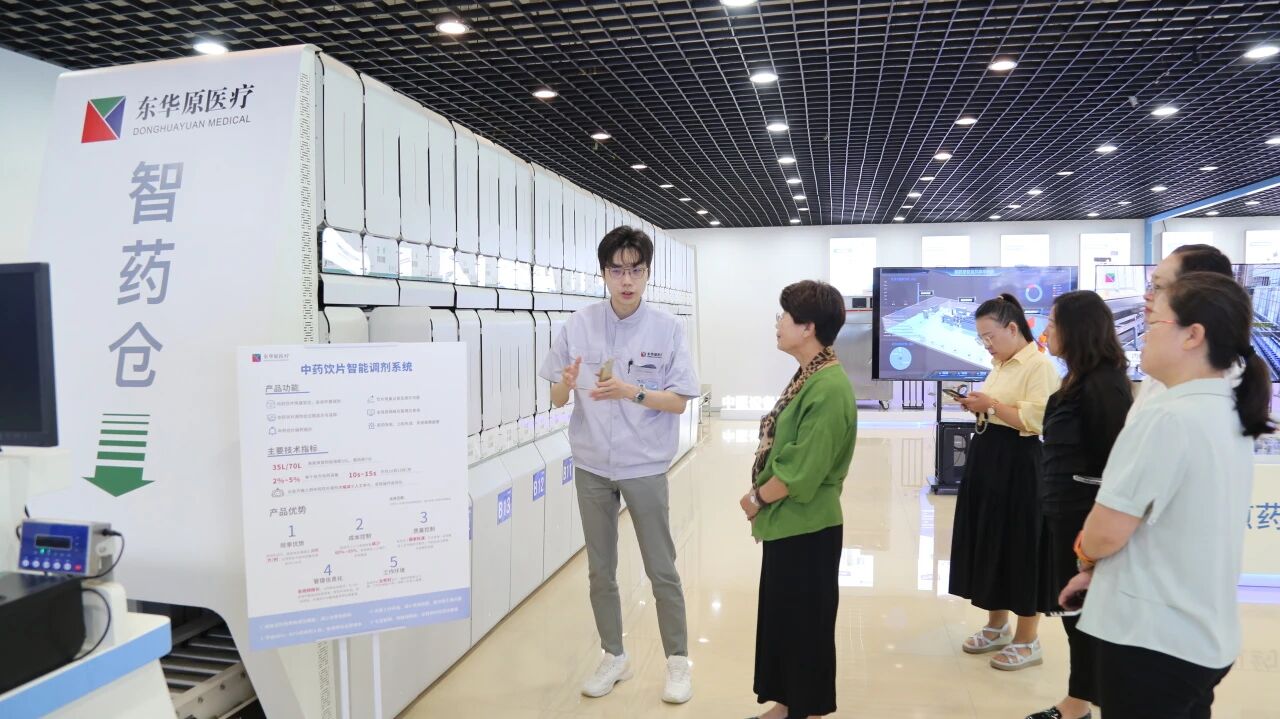 交流座谈会结束后,协会领导一行移步至东华原产品展厅及生产一线,参观位于总部大楼内的研发中心、电子器件装备车间、设备装备车间、调剂自动化装备车间和数字立体化库房等,对东华原智慧中药房整体解决方案运用的现代化中药煎煮设备有了更直观的认识,并亲身体验东华原的健康管理设备,感受其使用便捷、自助体验、检测快速的优越特性。