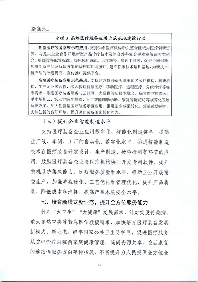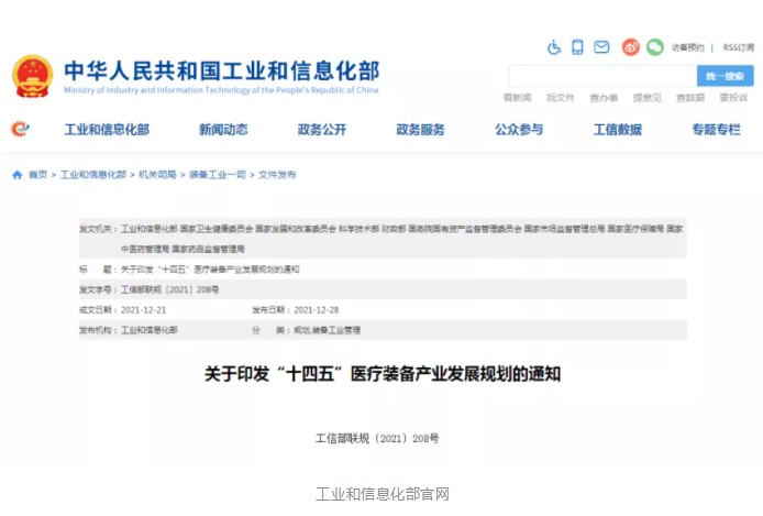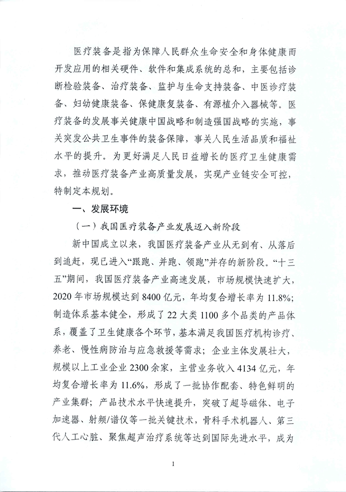 日前,工业和信息化部、国家卫生健康委员会等是部门联合印发了《“十四五”医疗装备产业发展规划》,具体内容如下: