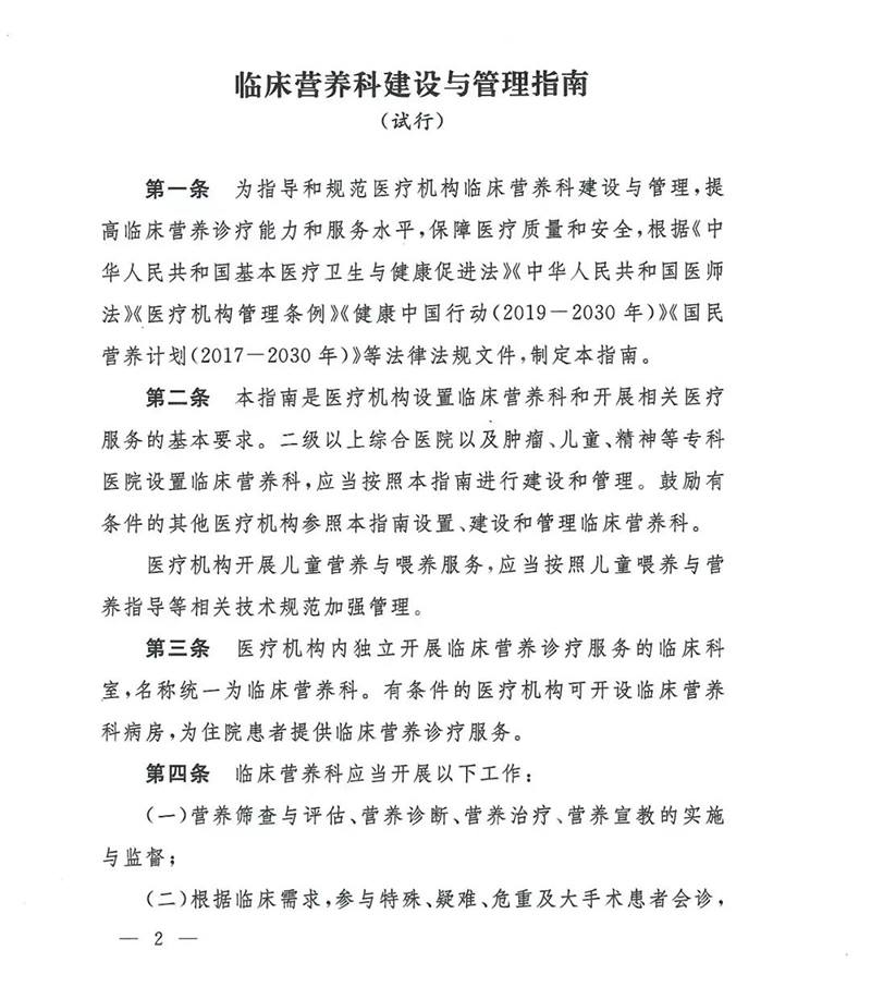 国家卫健委发布《临床营养科建设与管理指南》通知
