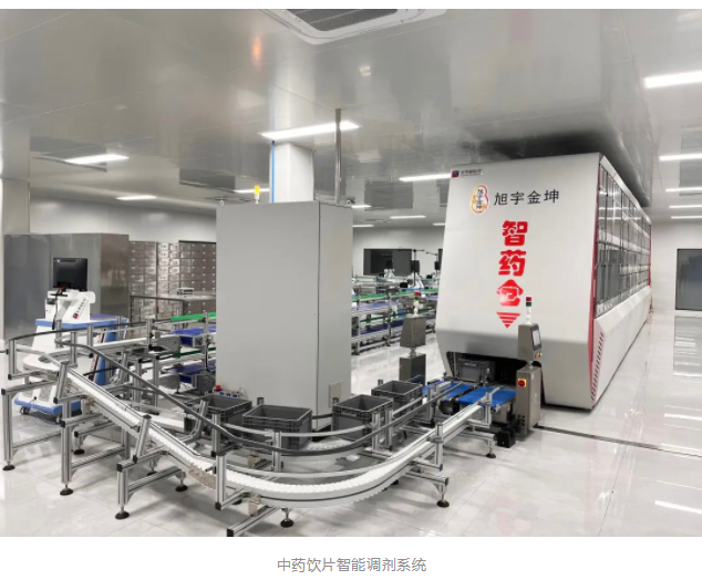 旭宇金坤董事长张旭在采访中表示:“我们(智慧中药房)目前有17名员工,每天能生产2万剂(汤剂),基本可以满足当前疫情防控需求。我们是通过在网络接方、审方、再次复核,确定无误后,由智能调剂系统从智药仓自动抓药,平均每分钟3到4付,抓完药后我们再次复核,确定准确无误后,我们再进入煎煮过程,中药的煎煮过程我们是自动控制的,也可以针对处方的药材和煎药方案的参数自动加水、自动煎煮、自动包装,包装具有高温消毒功能,自动实现两煎。全过程由高清相机留存资料,可以保存一年,以便质量追溯。”