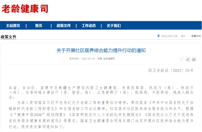 老龄健康司:关于开展社区医养结合能力提升行动的通知