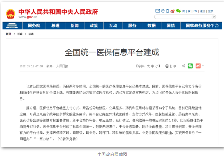 据介绍,医保信息平台涵盖支付方式、跨省份异地就医、公共服务、药品和医用耗材招采等14个子系统,目前已陆续落地应用,可满足几百个统筹区多样化的业务需求。新平台已经在异地就医结算、支付方式改革、医保智能监管、药品集中采购、医药价格监测等领域发挥重要作用,支撑医保跨区域、跨层级、跨业务、跨部门、跨系统的信息共享、业务协同和服务融通,实现医保业务“一网通办”“一窗办结”。