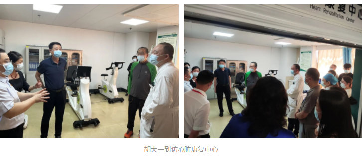 在接待人员的陪同下,胡大一参观了医院心脏康复中心。作为我国著名心血管病专家,我国首批推广心脏介入手术的医生之一,胡大一对于心脏康复中心的建设十分重视,与院内领导和中心负责人进行了深入沟通,并参观了心脏康复中心的主要设备设施。