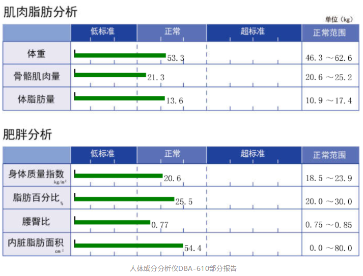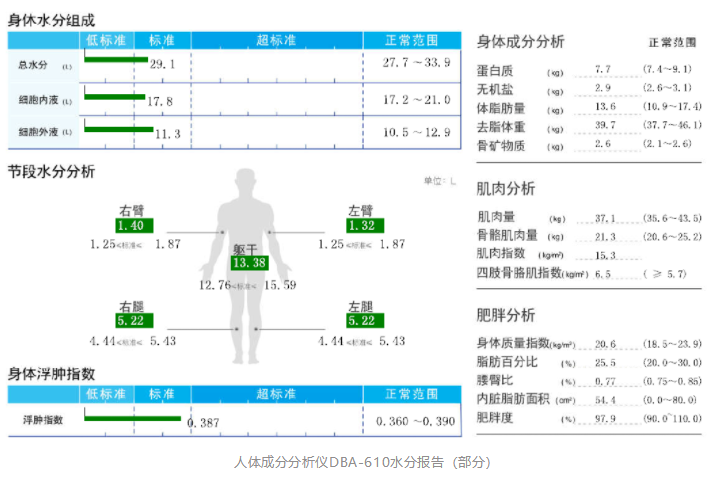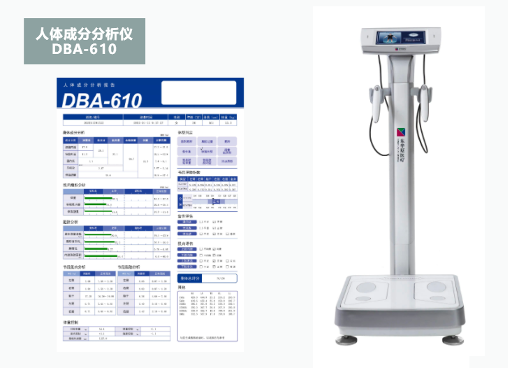 东华原人体成分分析仪正是通过生物电阻抗测量方法测量并分析人体各项成分,如蛋白质、总水分、体脂肪量、内脏脂肪面积、节段脂肪、身体质量指数、骨骼肌肉量等多种指标,并给出肌肉评估、肥胖评估、营养评估等多种和身体健康紧密相关的健康评估,为患者调整生活方式、关注自身身体变化提供参考依据。