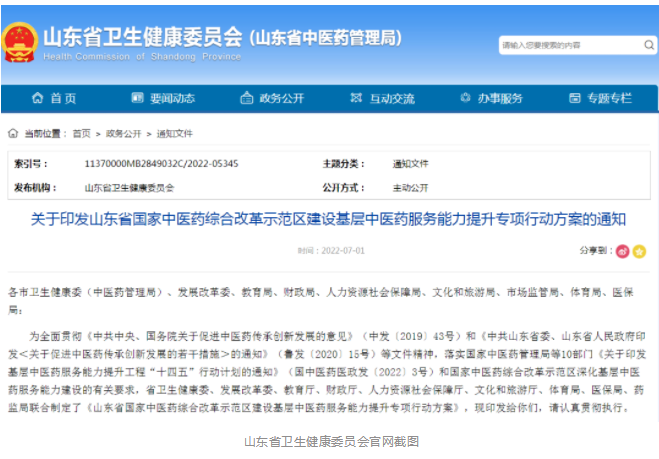 基层中医药十个“全覆盖”:山东省国家中医药综合改革示范区建设基层中医药服务能力提升专项行动方案发布!