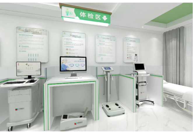 健康小屋有健康保障、健康管理和健康维护的多重作用,可并联多种专业检测设备:人体成分分析仪、心率变异性检测仪(精神压力分析仪)、超声骨密度仪、动脉硬化检测仪、医用电子血压仪、中医体质辨识仪、身高体重测量仪等,可为检测者提供全面、简便、快速、持续的健康监测与查询服务。
