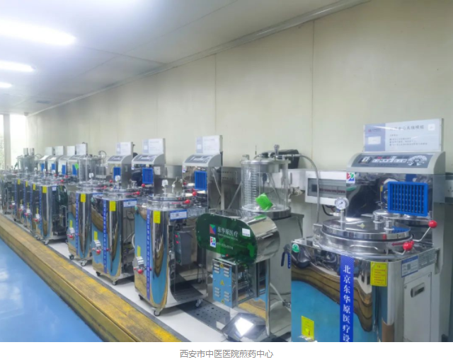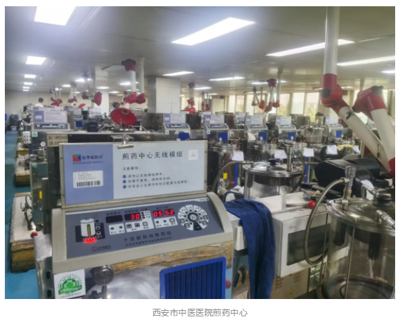 西安市中医医院煎药中心占地面积2000余平方米,应用东华原现代化煎药中心解决方案,硬件上配备了十功能自动煎药机、中药汤剂包装机等150余台设备,软件上则应用东华原自主研发的智能化煎药控制系统,从处方管理到各流程线上管控,再到中药饮片煎煮、汤剂包装的具体操作,做到每个环节都专业、精准、高效。