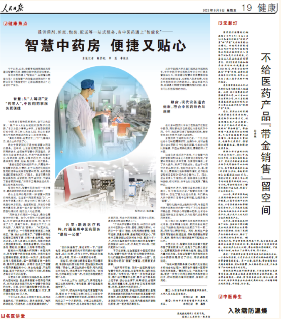 东华原智慧中药房解决方案登上人民日报健康版面头条