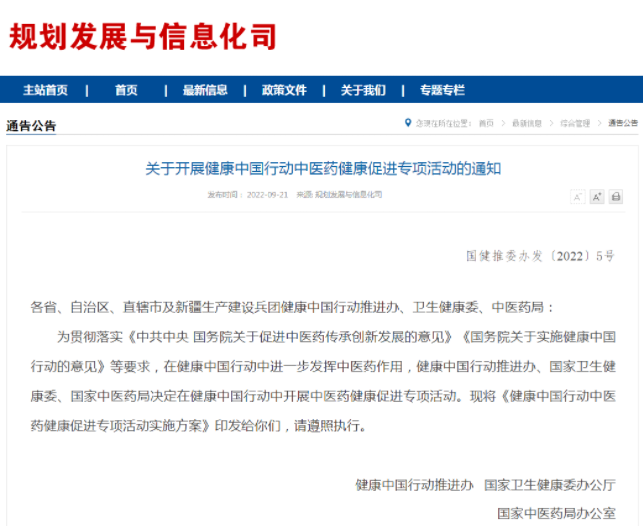 健康前沿 | 《健康中国行动中医药健康促进专项活动》发布