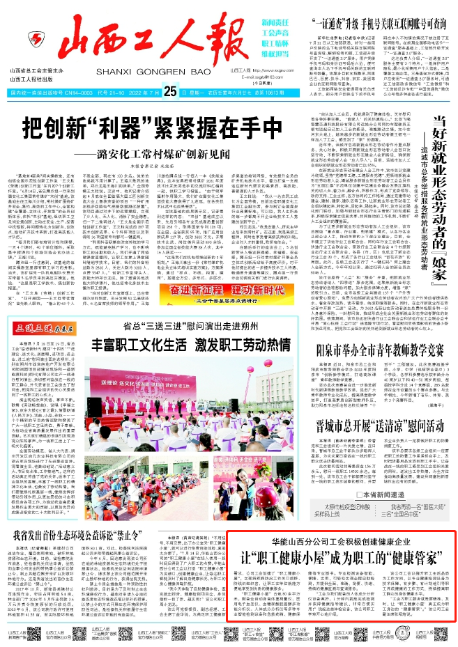 山西工人报:让“职工健康小屋”成为职工的“健康管家”