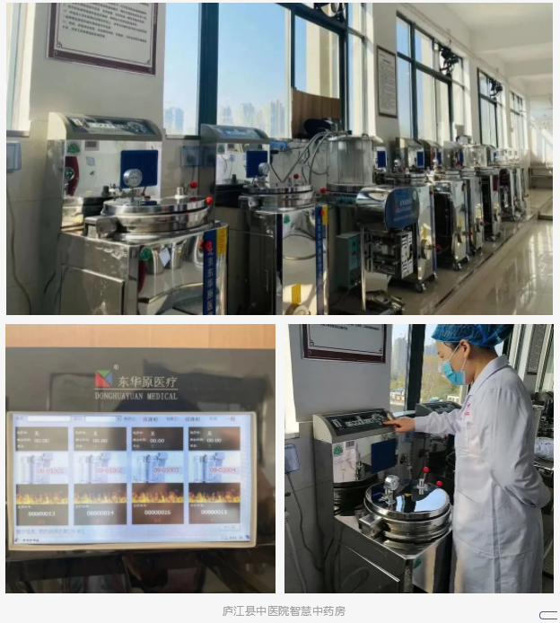 “‘智慧中药房’应用计算机控制、网络技术及互联网技术,通过电子处方自动接收、条码打印、中药饮片调剂、复核、浸泡、煎煮、包装、发药、配送等环节的全过程信息化控制与管理,实现了煎药质量的全过程把控和信息追溯。”庐江县中医院院长王大力表示,群众可以通过“智慧中药房”公众号,了解自己所抓中药熬制的进展。