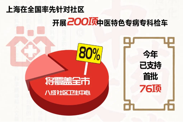 依托民心工程新三年行动计划,上海还在全国率先针对社区开展200项中医特色专病专科建设,将覆盖全市80%的社区卫生中心,今年已支持首批76项。同时,上海推出社区中医基本病种清单,覆盖114种疾病,在国家清单基础上增加了44种。目前,上海各社区平均可开展中医基本病种服务达到60余种。