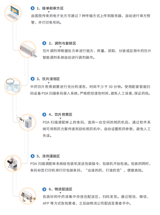 12.完善代煎流程追溯。开展中药代煎在线服务,通过移动端向群众开放中药代煎流程和物流配送信息查询,实现中医处方审核流转、中药代煎流程、用药交代、物流状态等信息实时查询,设置群众在线用药反馈、满意度评价和投诉等功能,提高群众中药代煎服务的安全性和便捷性。
