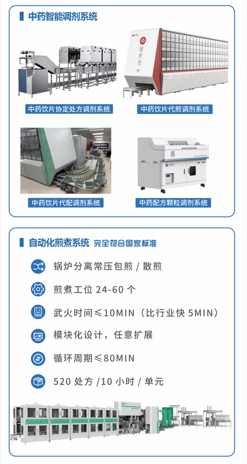 东华原依托资深研发优势,具有10大系列,40多个型号的中药煎药包装设备,如:十功能煎药机、常压煎药机、中药制粉机、贴标包装一体机、自动调膏包装一体机等,能够满足不同场景、不同需求的智慧中药房建设需求。