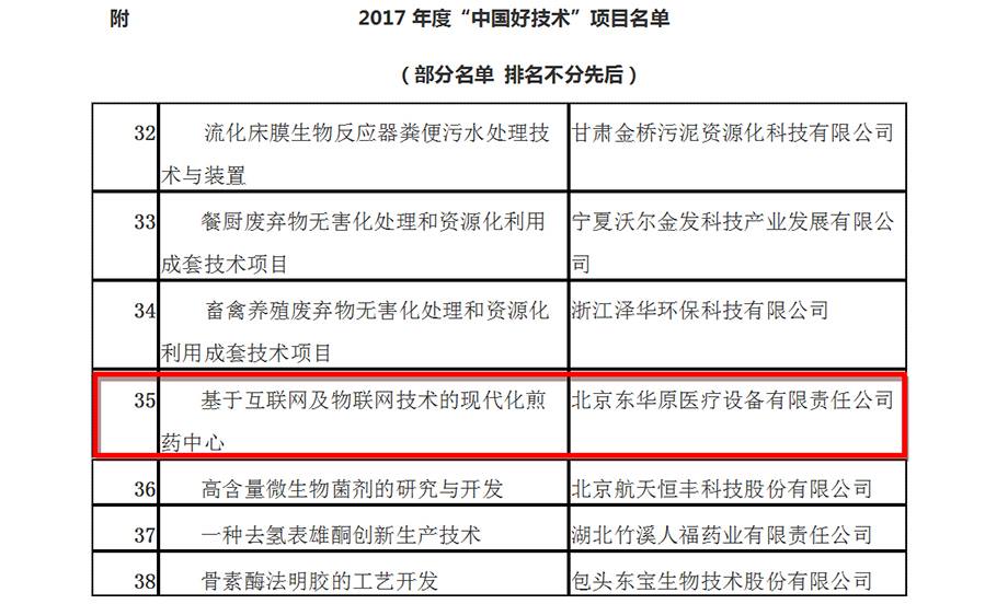 2018年5月11日中国生产力促进中心协会公布了2017年度“中国好技术”评审结果。其中万象城官网的《基于互联网及物联网技术的现代化煎药中心》入围2017年度 “中国好技术”奖项。
